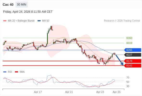 在 8265 之下,看跌,目标价位为 8178 ,然后为 8142 。