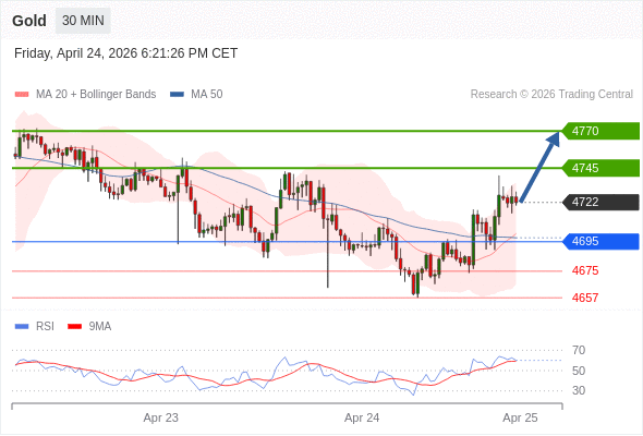 在 4695 之上,看涨,目标价位为 4745 ,然后为 4770 。
