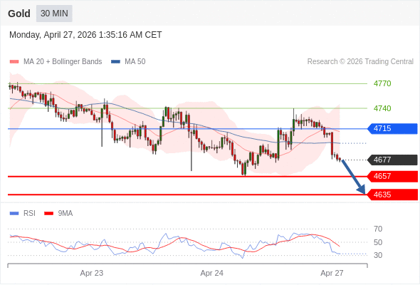 在 4715 之下,看跌,目标价位为 4657 ,然后为 4635 。