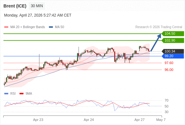 在 99.20 之上,看涨,目标价位为 102.90 ,然后为 104.50 。