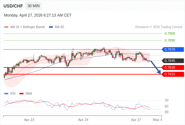 在 0.7870 之下,看跌,目标价位为 0.7830 ,然后为 0.7815 。
