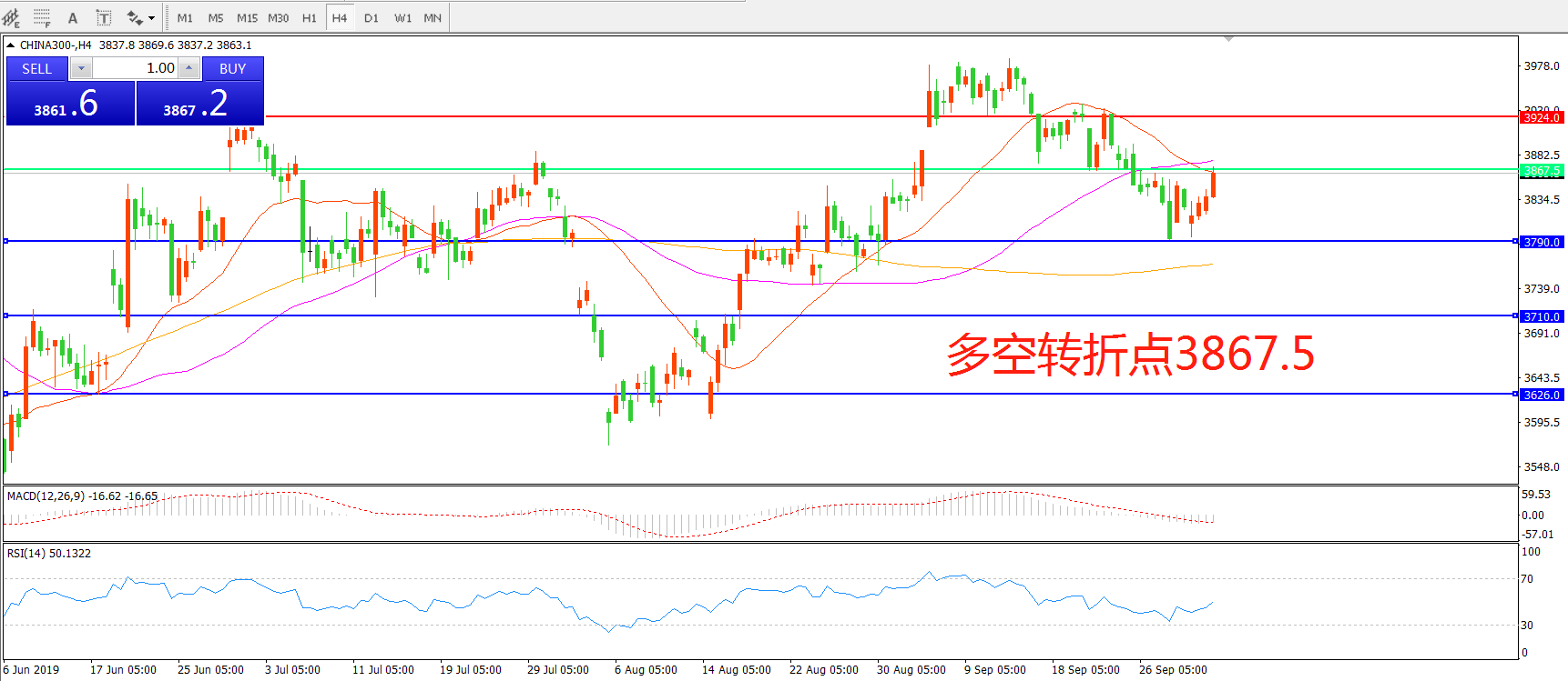 多空转折点:3867.50