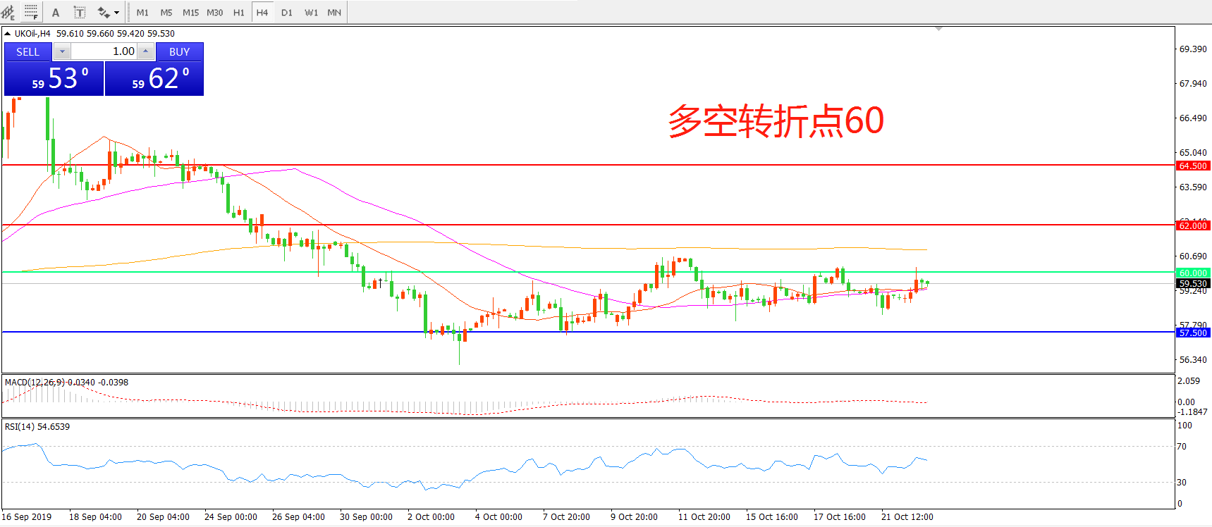 交易策略:在60.00之下看跌,目标57.50    55.00