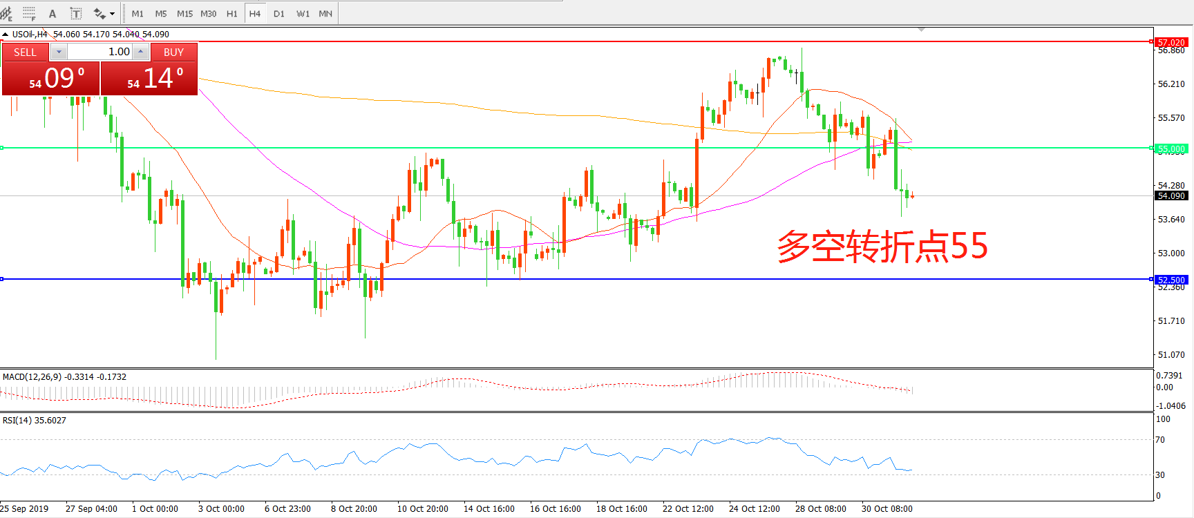 多空转折点:55.00