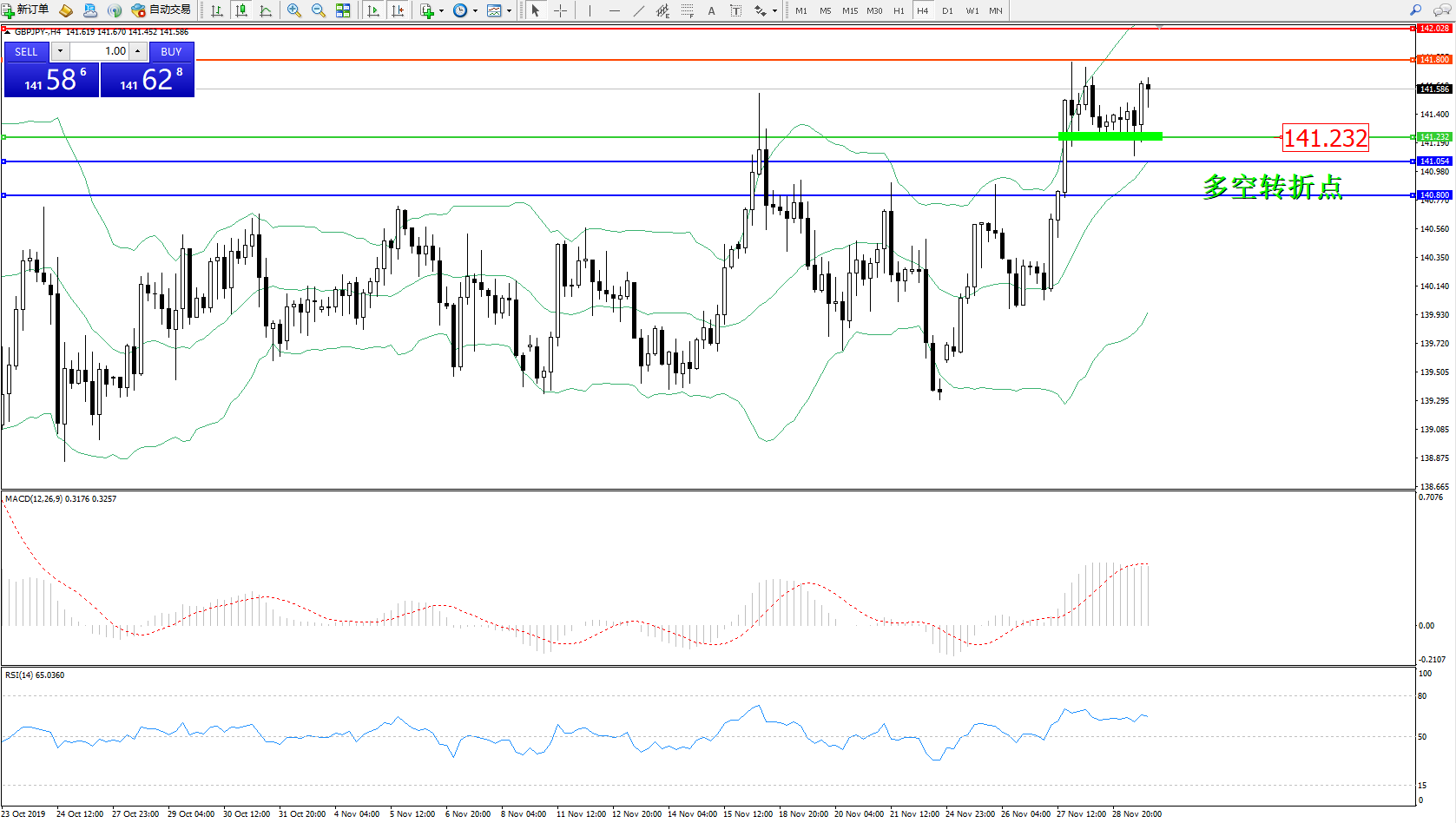 交易策略:141.232上方看涨,目标141.800142.028
