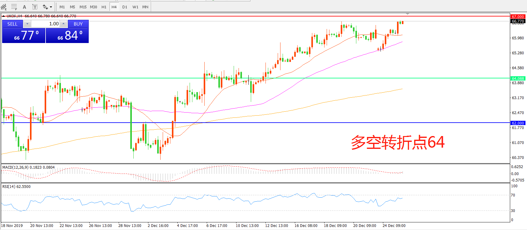 交易策略:在64.00之上看涨,目标67.00 69.50