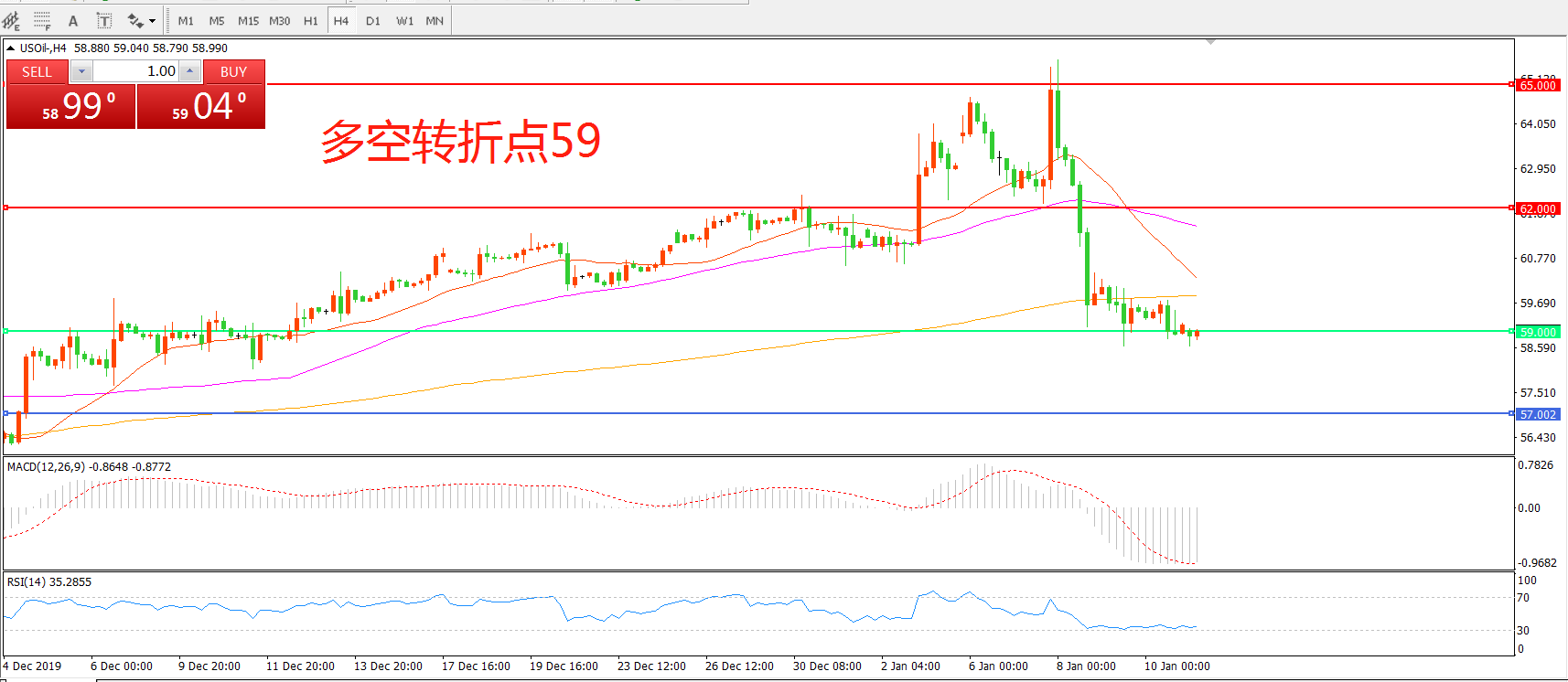 交易策略: 在59.00之下看跌,目标57.00 54.00