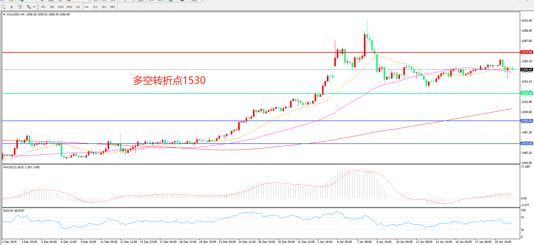 多空转折点:1530.00