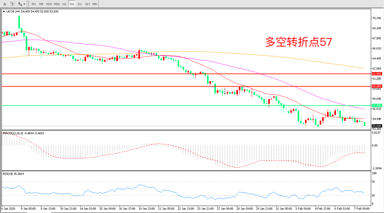 交易策略:在57.00之下看跌,目标55.00    52.00