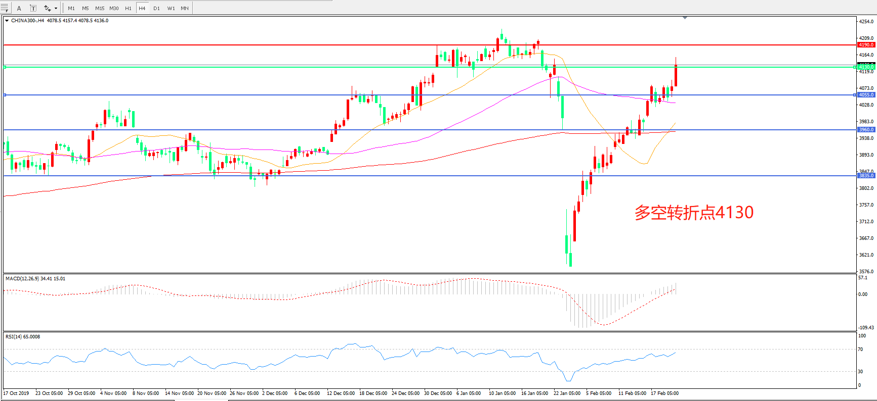 多空转折点:4130.00