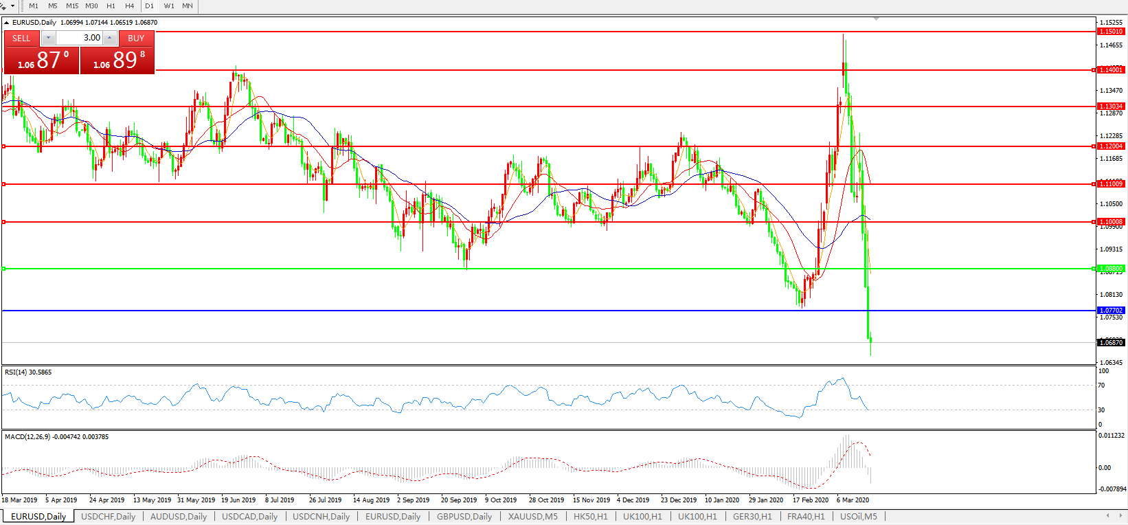 欧元兑美元EURUSD 日线图: