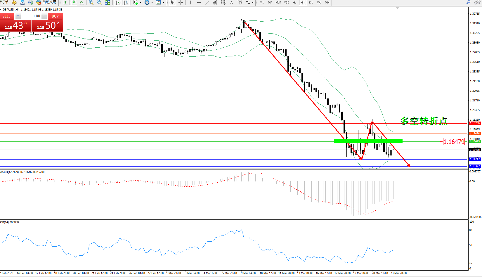 交易策略:1.16479下方看跌,目标1..142171.13327
