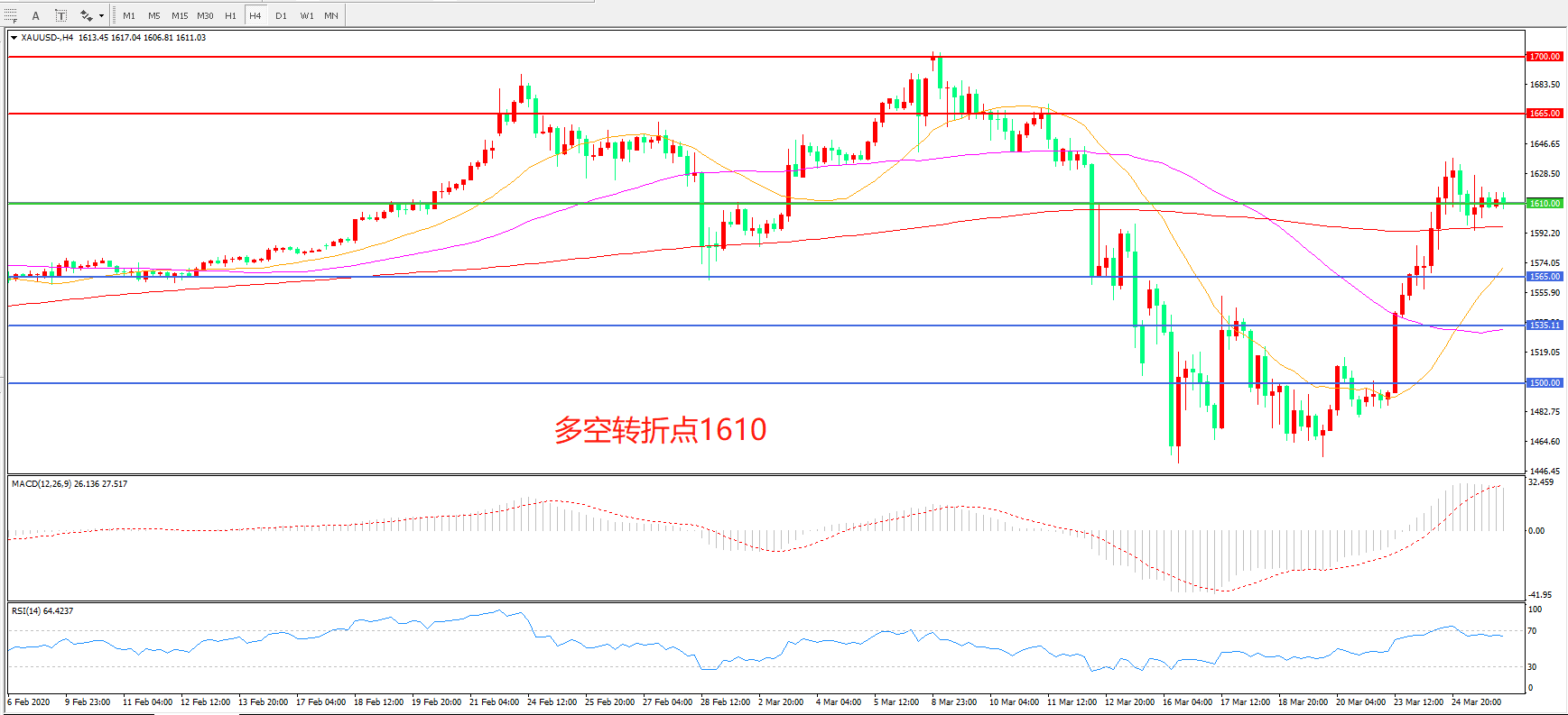 多空转折点:1610.00