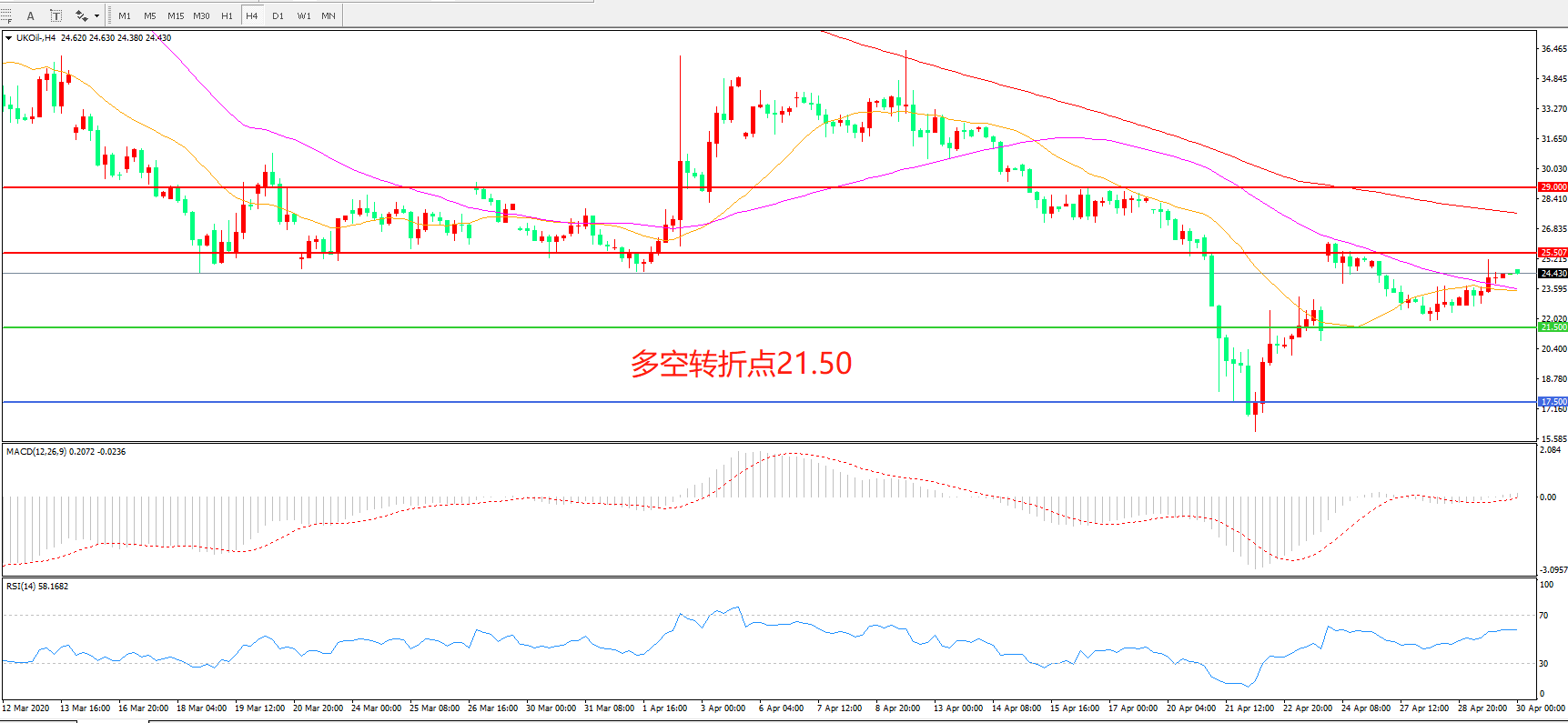 周三(4月28日),美国能源信息署公布,当周EIA原油库存增加899万桶,比预期少24%,而汽油库存增量不及市场预期的四分之一, 大幅利好,数据公布后,布伦特原油快速走高后小幅回落,最终收报24.41美元/桶。