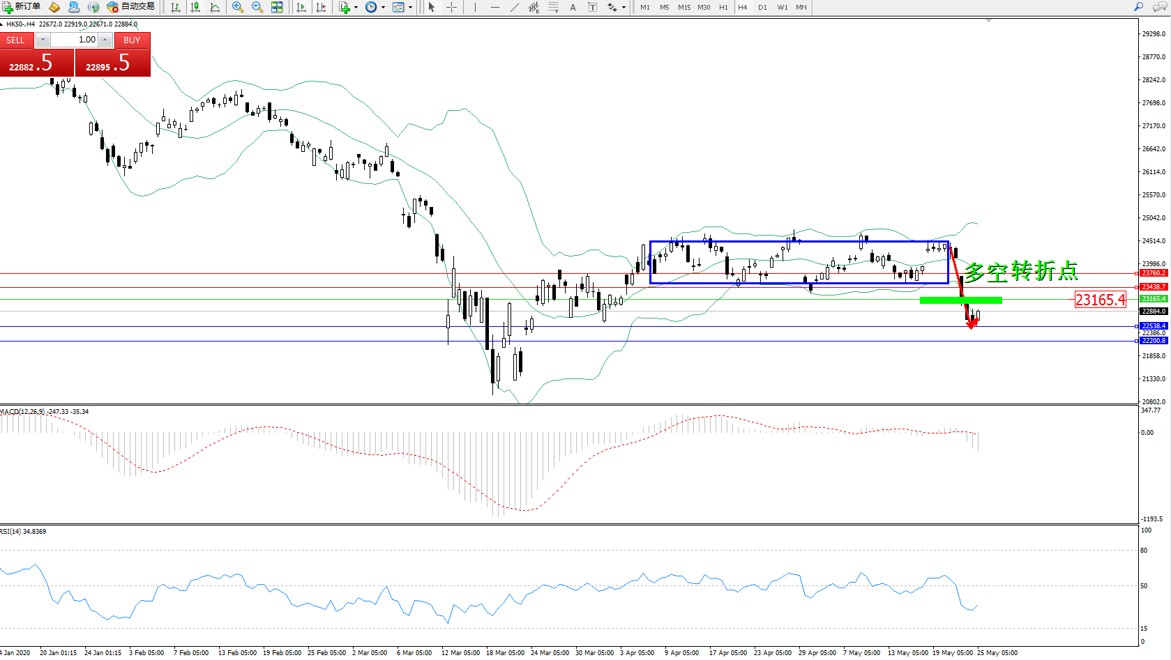 恒指HK50 ——4小时K线图显示: