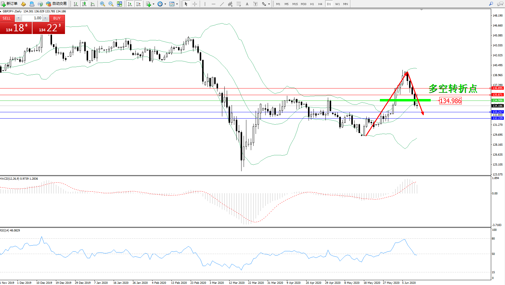 多空转折点:134.986