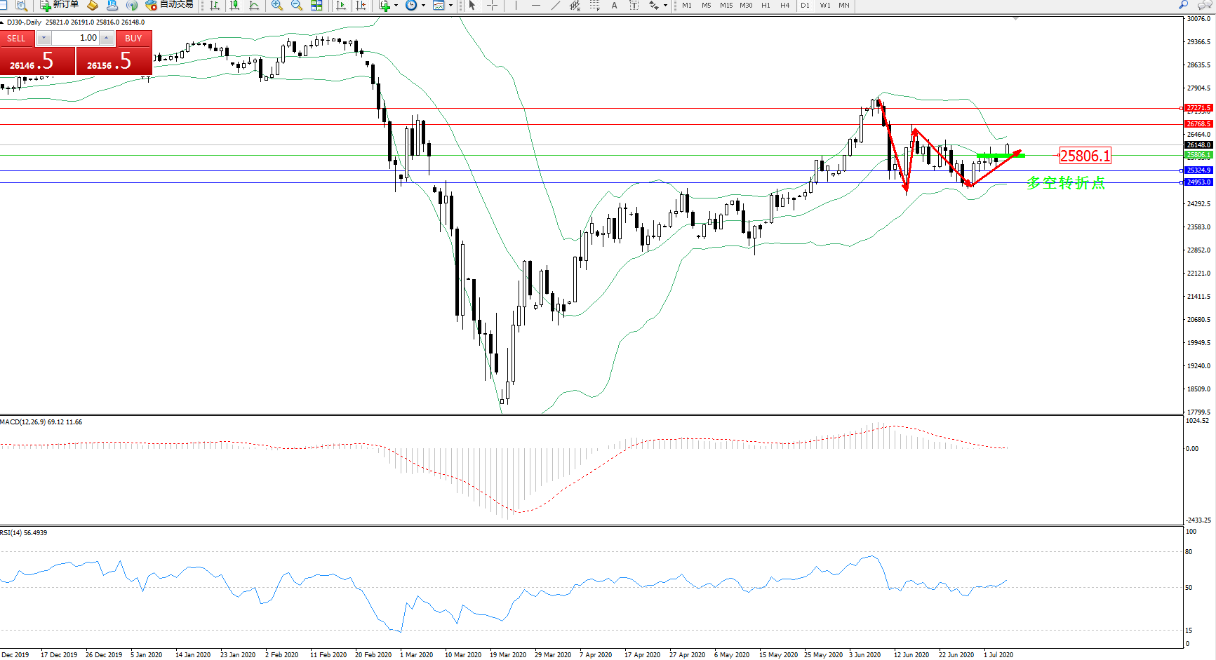 道琼斯指数76日(周一)收盘上涨459.70点,涨幅1.78%,报26287.03点。美国股市收高,科技股涨势推动纳斯达克综合指数再创历史新高。中国上证综指周一创下近五年最大升幅,推动全球股市看涨情绪升温,尽管投资者仍然对美国新冠病例激增保持警惕。投资者意识到,美国经济形势并不像34月份时候那么糟糕,市场已经开始感觉到,公司业绩可能广泛好于预期。MSCI世界指数升至6月初以来的最高水平,投资者对空前刺激措施推动的经济复苏抱有信心。但是,经济恢复正常仍有很长的路要走。高盛下调了本季度美国经济增长预期,并表示消费支出可能在78月份停滞。