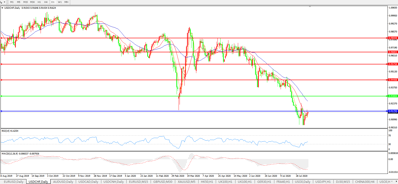 交易策略:0.9300下方看跌,目标0.9170、0.9000