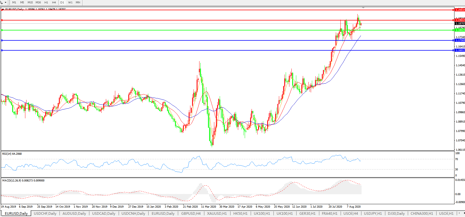交易策略:1.1800上方看涨,目标1.1900、1.2000