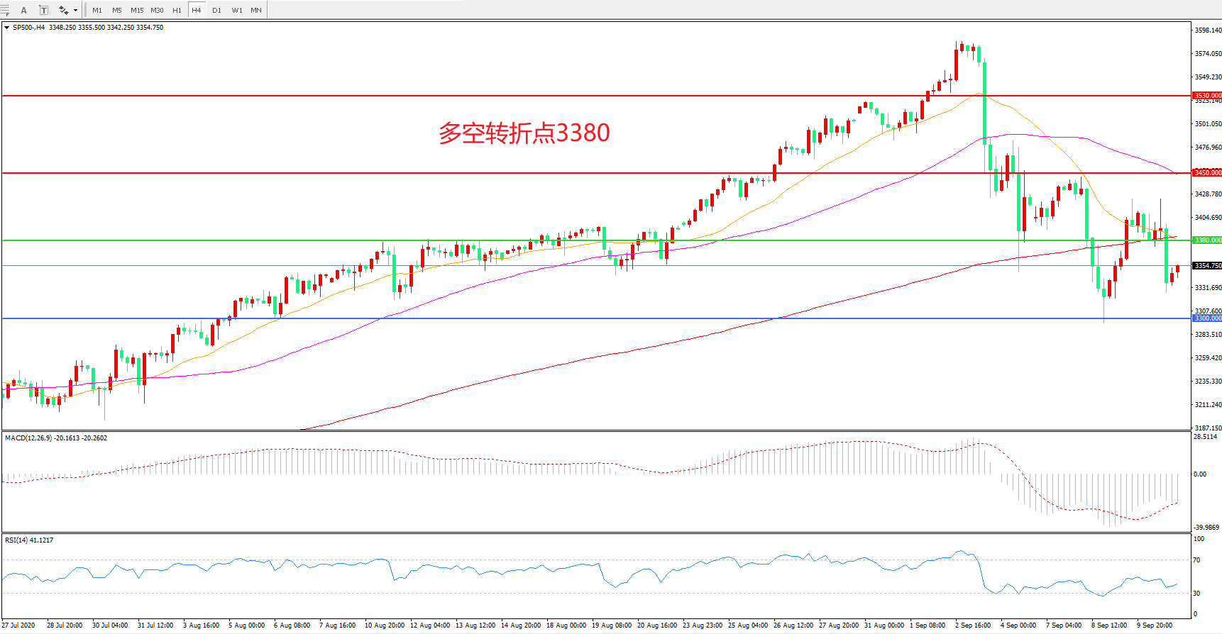 周四(9月10日),因就业数据不佳、新一轮经济刺激方案遭否,市场风险情绪遭受重创,标普500高开低走,收报3350点。科技股跌势再起,FAANG五巨头中,奈飞跌3.9%,苹果跌3.3%,Facebook和亚马逊跌幅超2%,考虑到目前估值过高,短期内可能还会出现更大的跌幅。