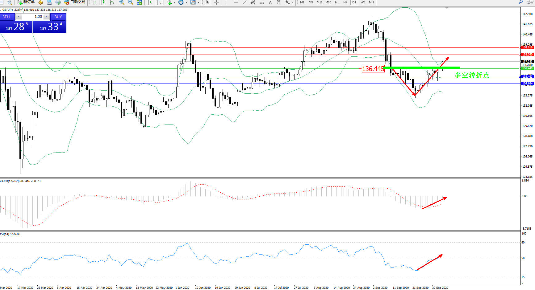 交易策略:136.445上方看涨,目标138.080、138.916