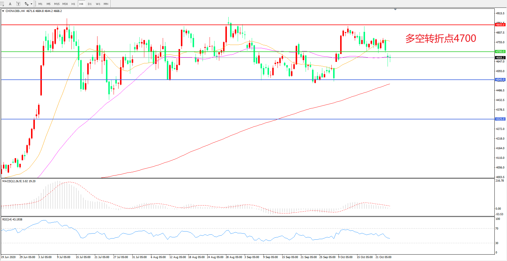 交易策略:在4700.00之下看跌,目标4545.00       4325.00