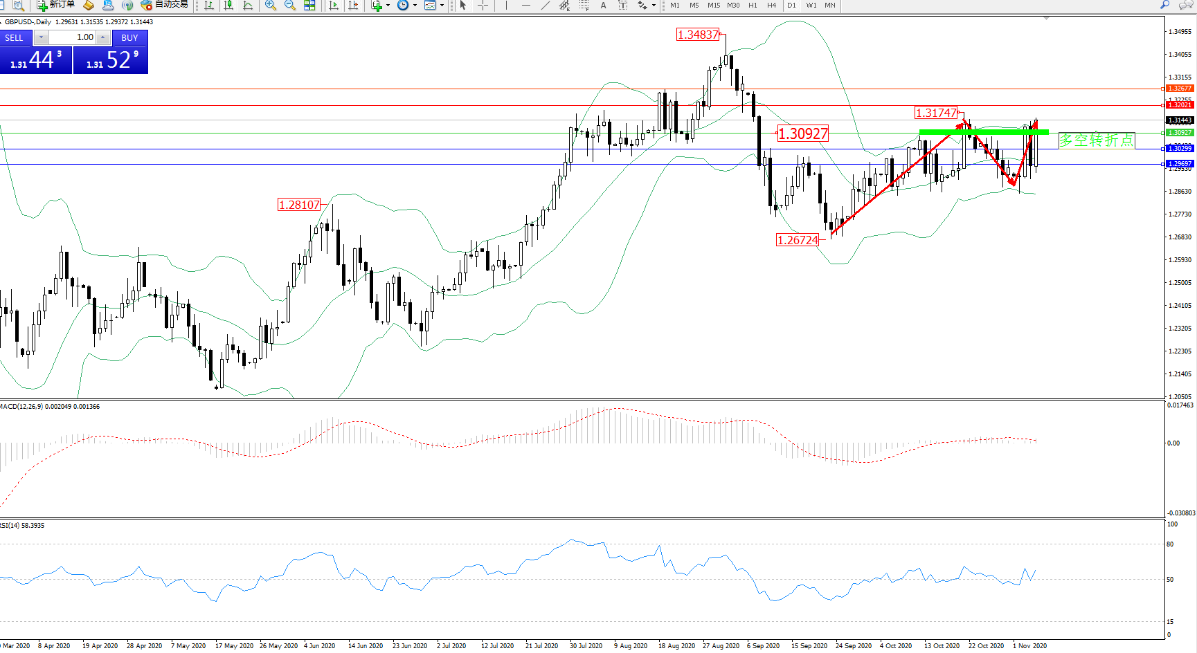 多空转折点:1.30927