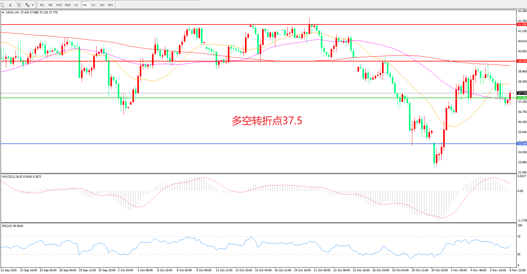 多空转折点:37.50