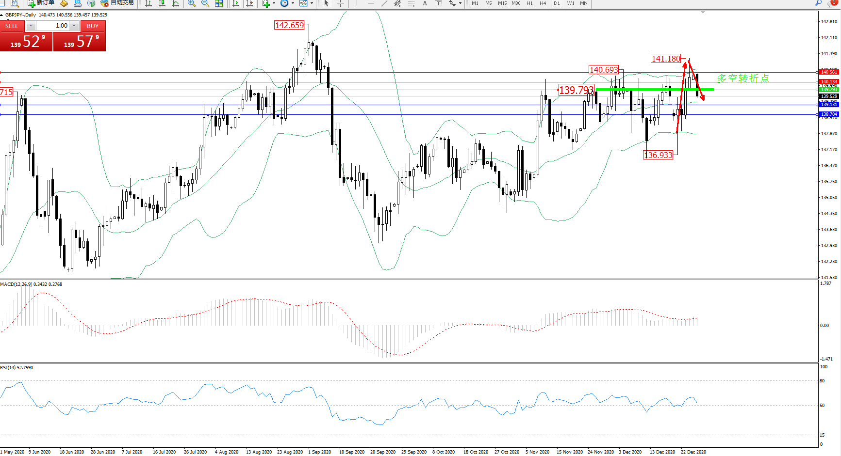 交易策略:139.793下方看跌,目标139.131、138.704