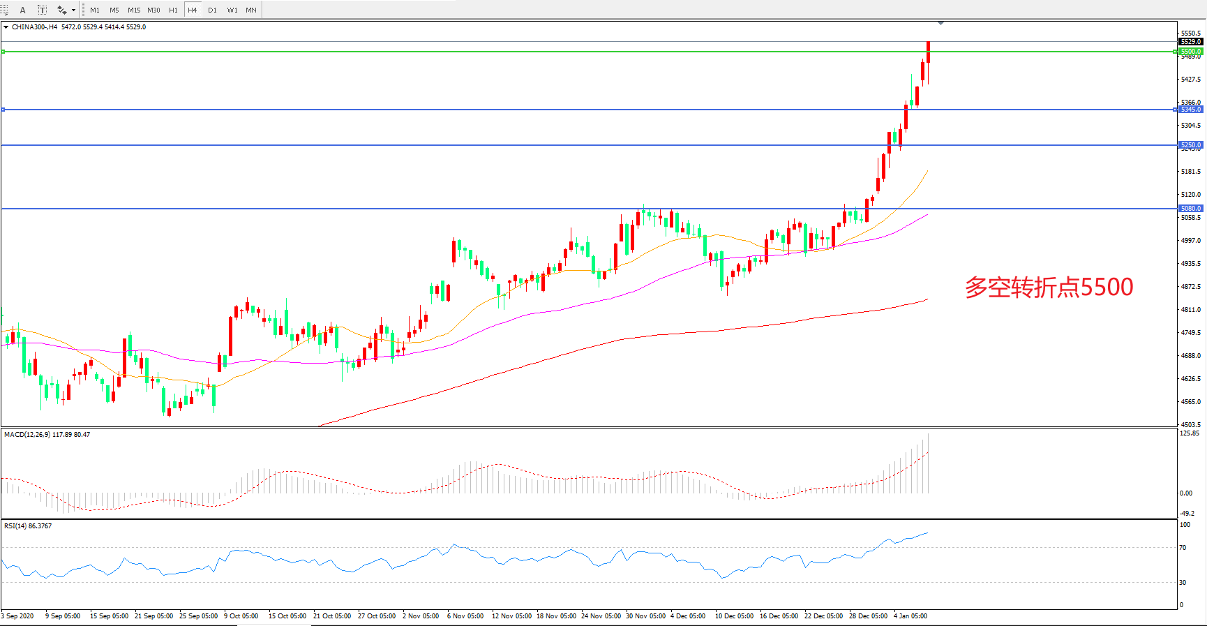 多空转折点:5500.00