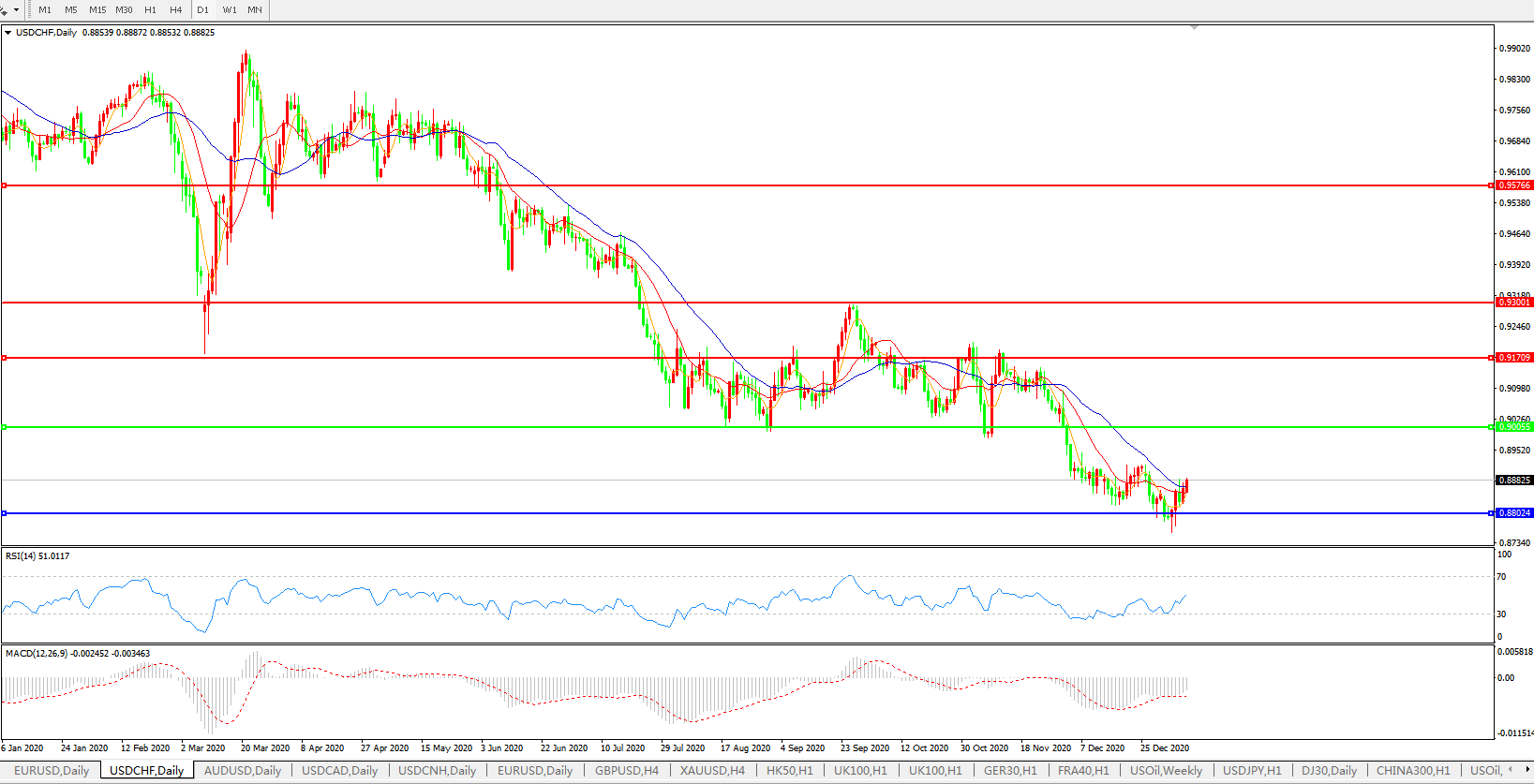 美元兑瑞郎USDCHF 日线图: