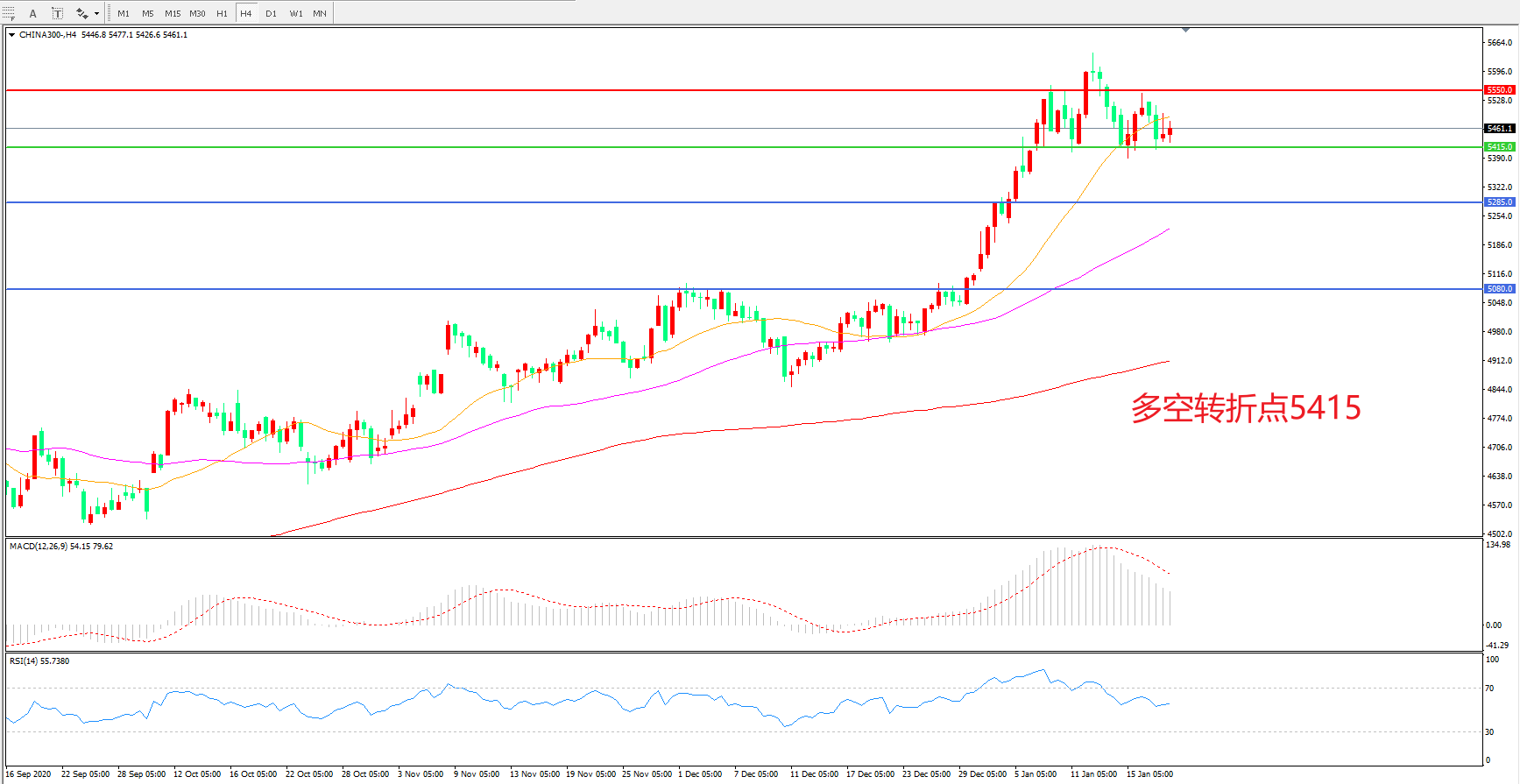 多空转折点:5415.00