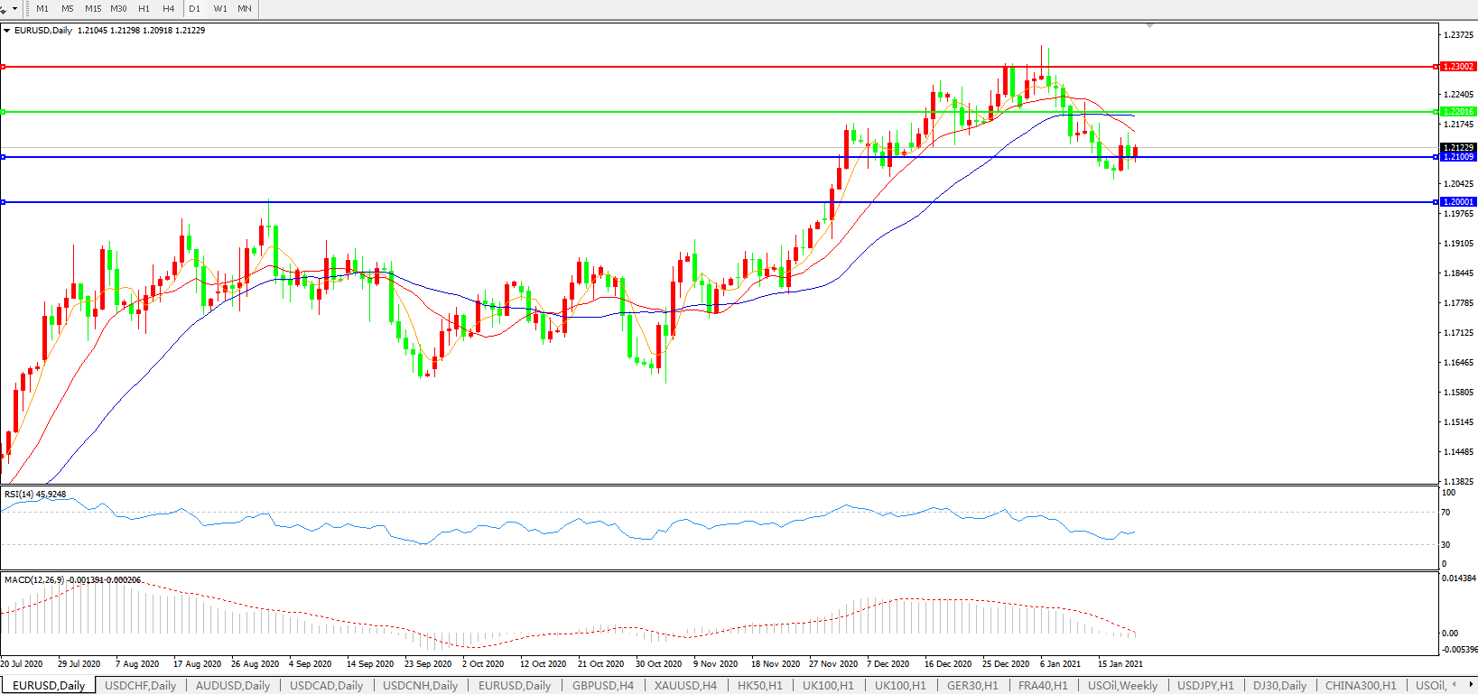 交易策略:1.2200下方看跌,目标1.2100、1.2000