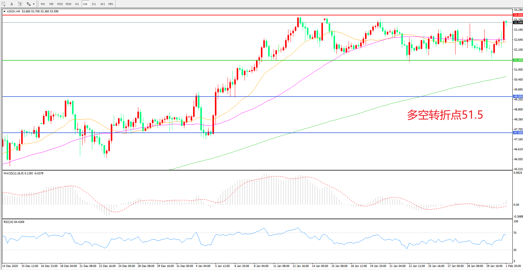 多空转折点:51.50