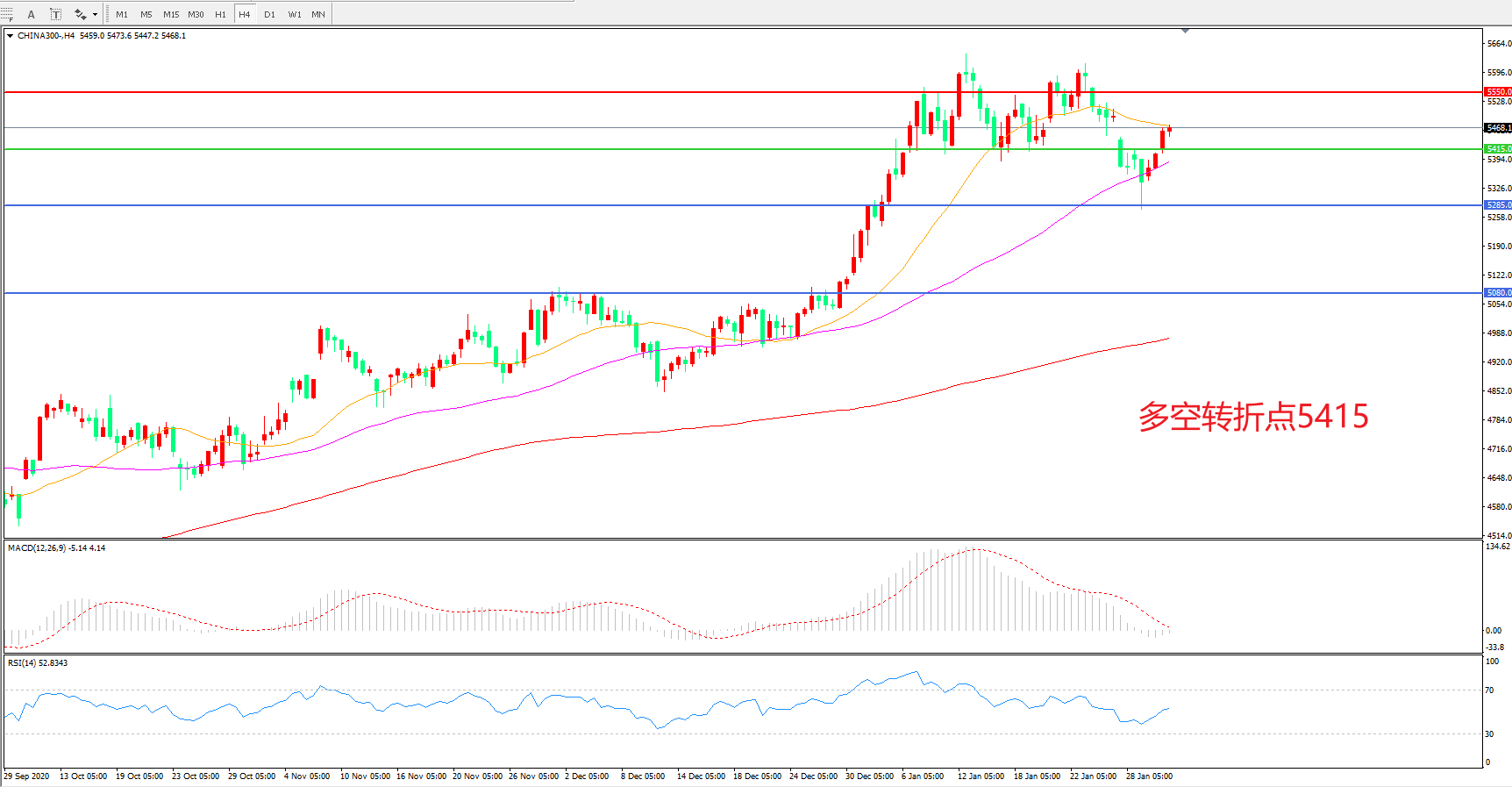 多空转折点:5415.00