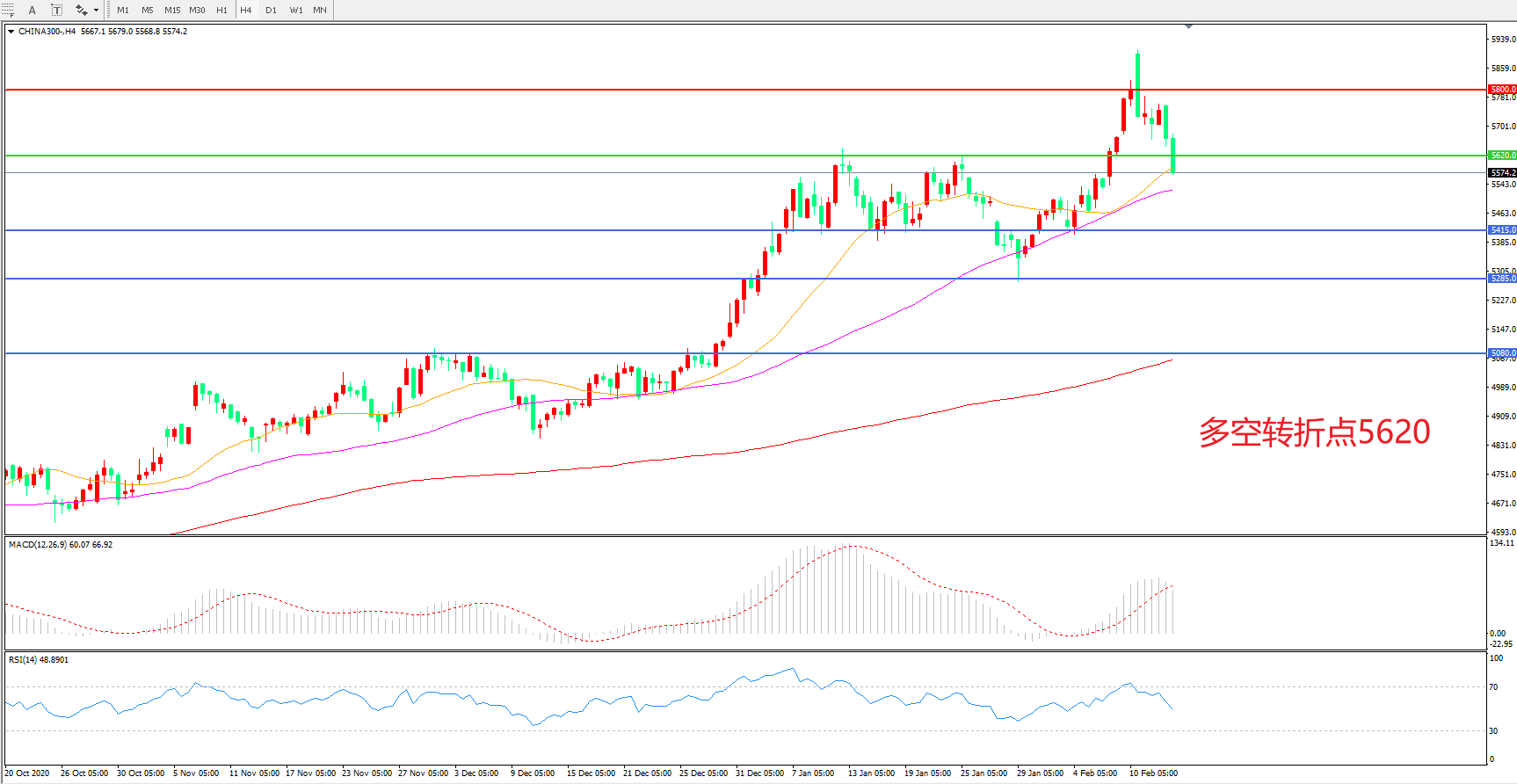 备选策略:在5620.00之上看涨,目标5800.00      5950.00