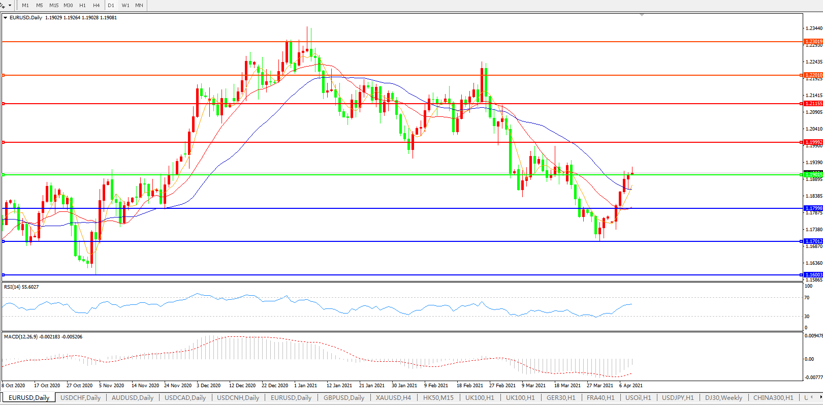 欧元兑美元EURUSD   日线图: