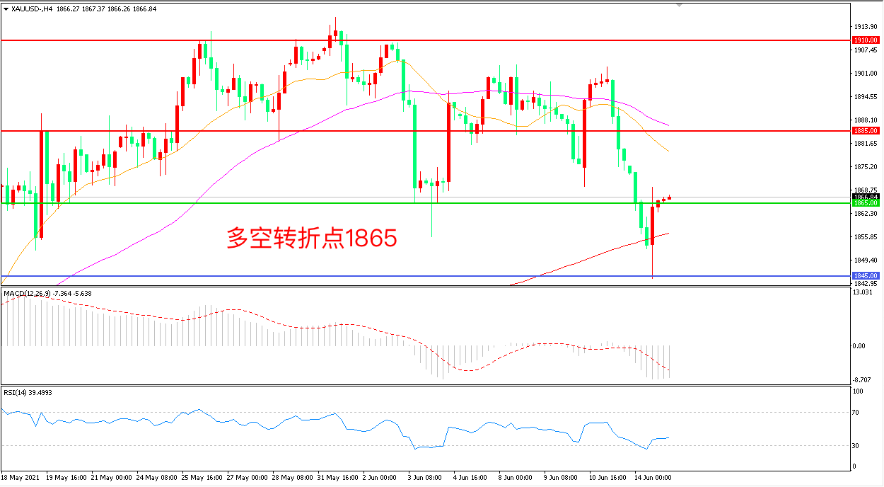 交易策略:在1865.00之下看跌,目标1845.00 1820.00