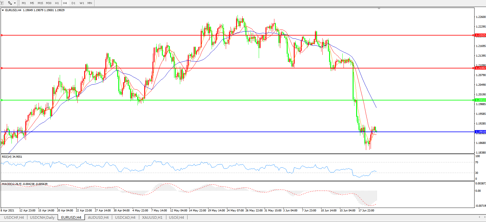 交易策略:1.2000下方看跌,目标1.1900、1.1800
