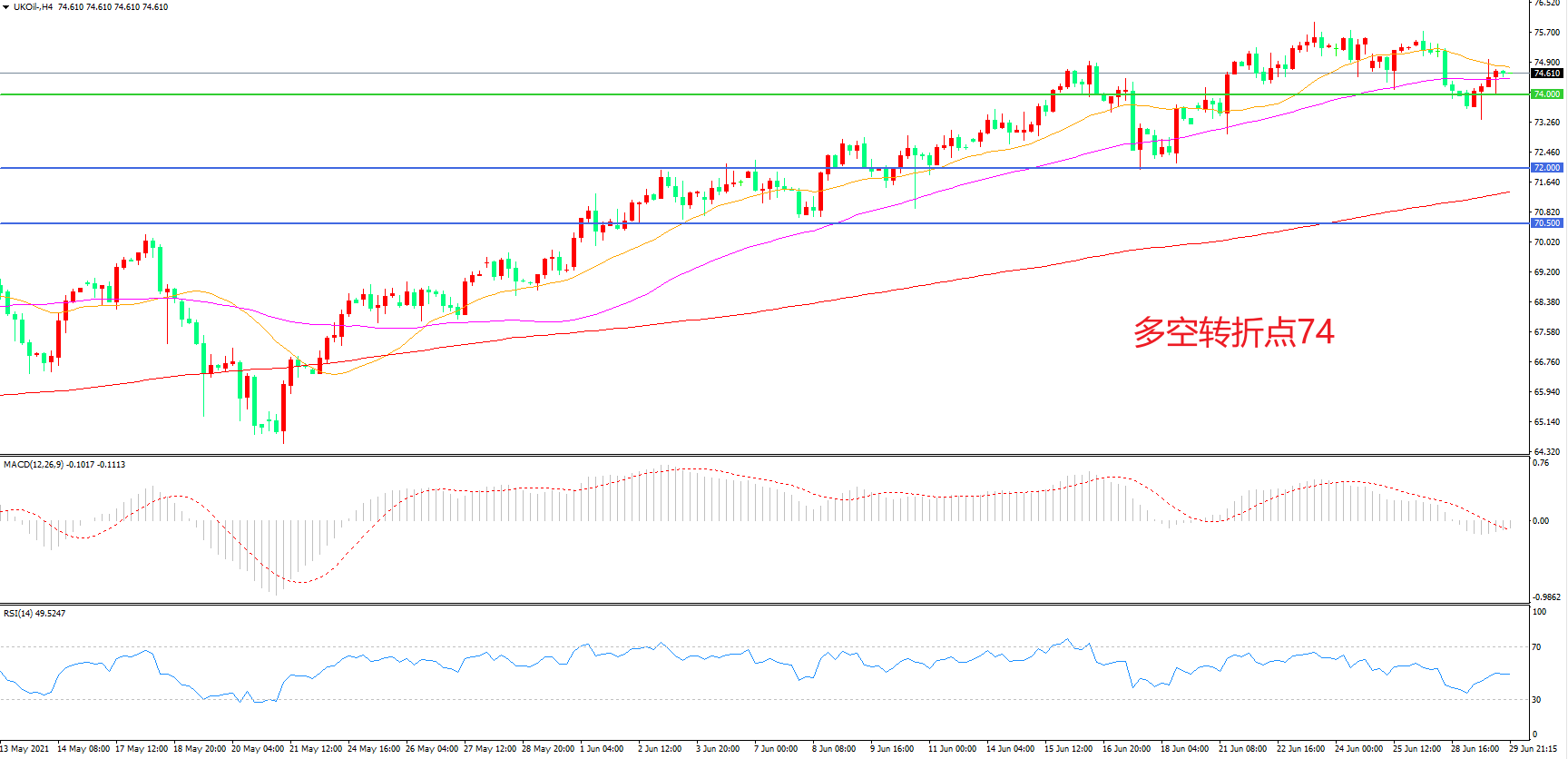 交易策略:在74.00之上看涨,目标77.00    80.00
