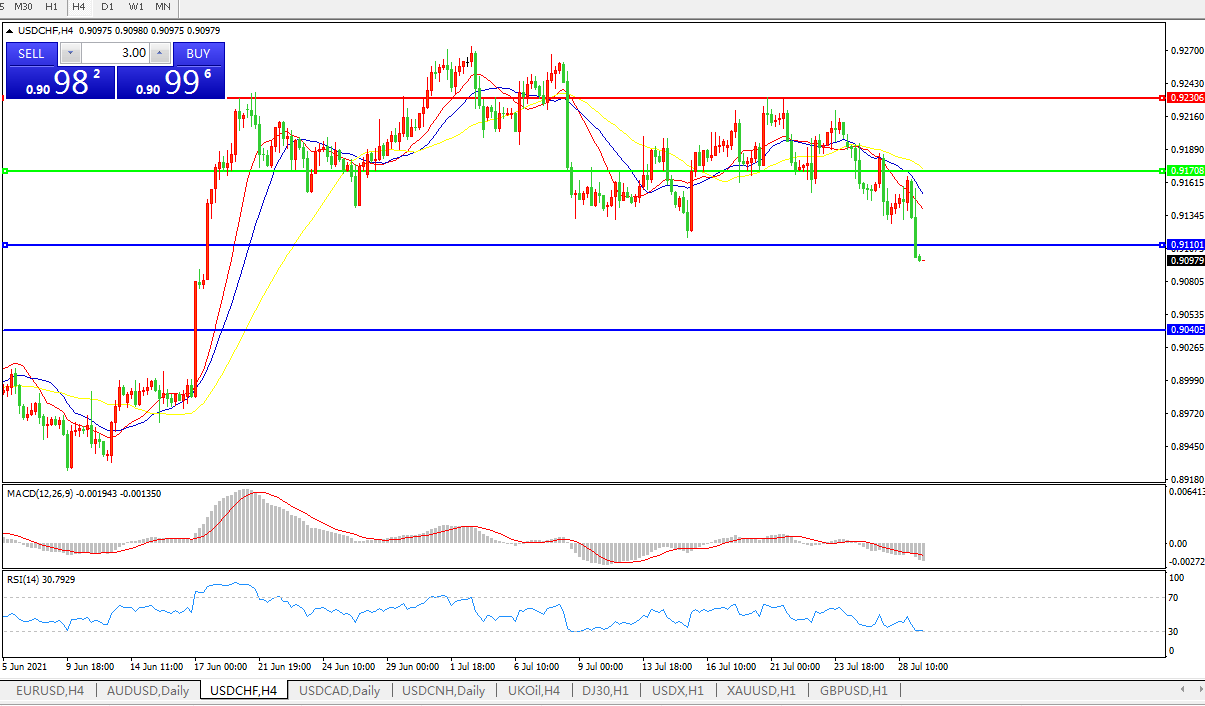 美元指数连跌三日,美元兑瑞郎快速走弱