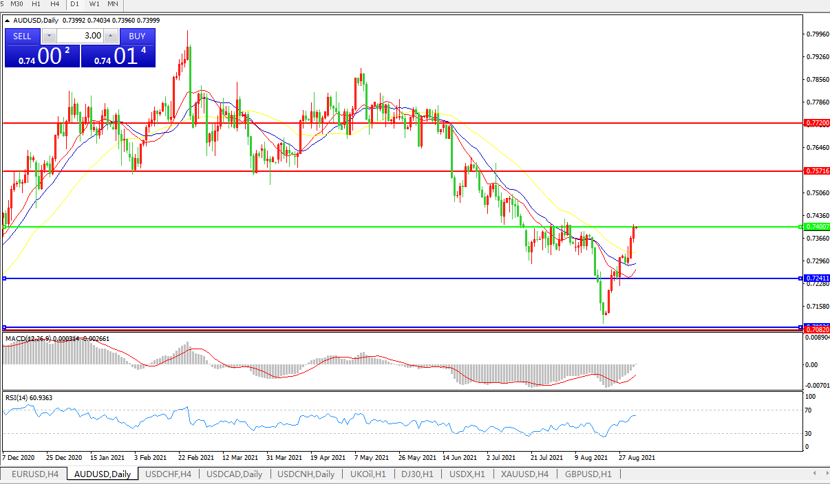 备选策略:0.7400下方看跌,目标0.7240、0.7080