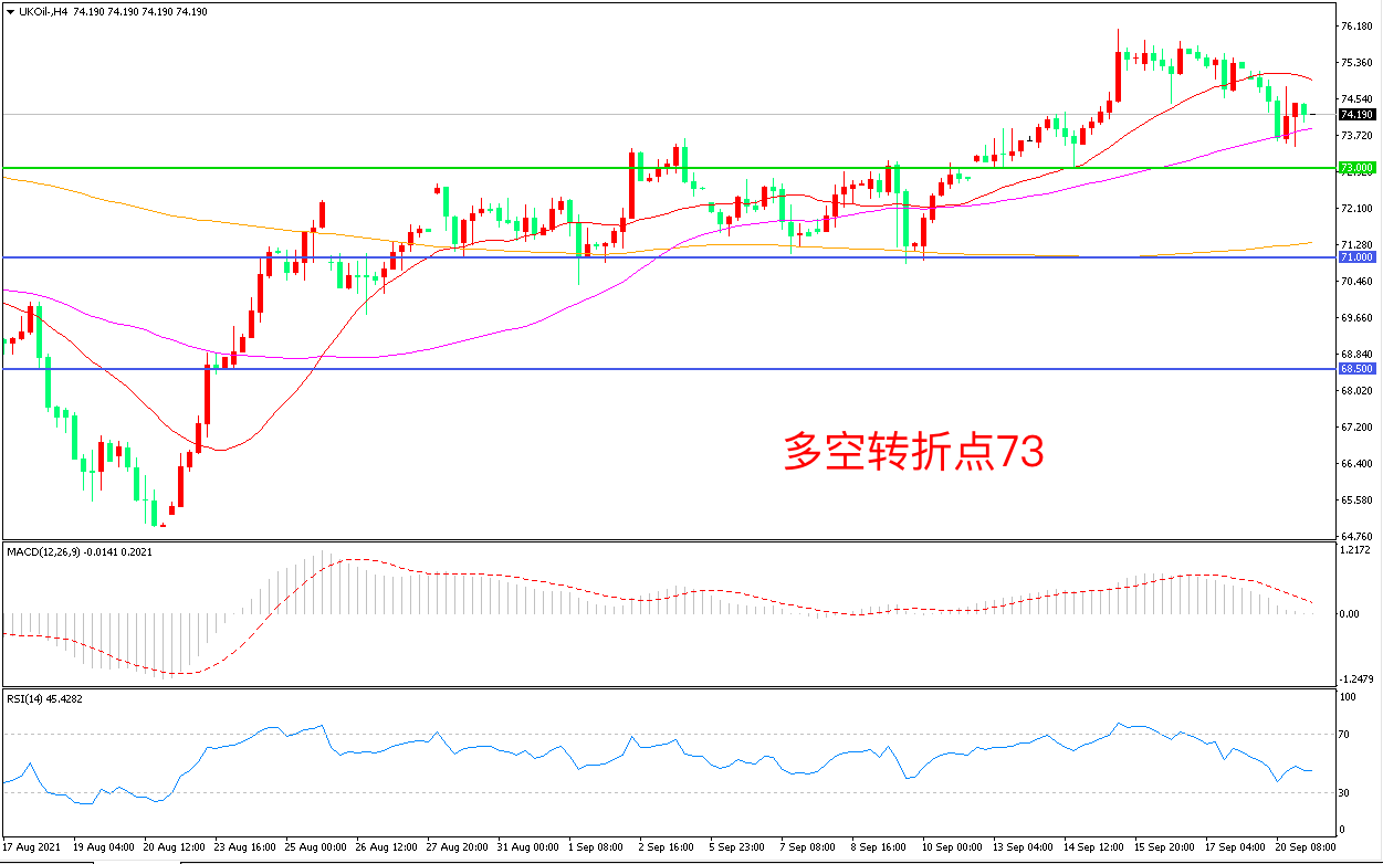 交易策略:在73.00之上看涨,目标75.00 78.00