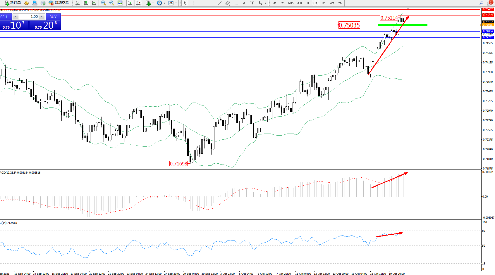 交易策略:0.75035上方看涨,目标0.75269、0.75407