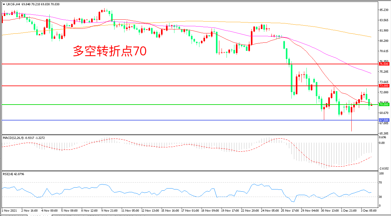 交易策略:在70.00之下看跌,目标67.50 65.00