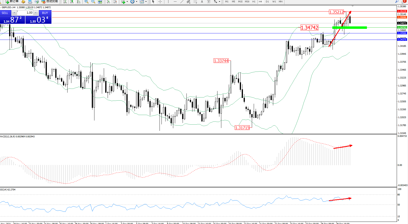 英镑美元GBPUSD ——4小时K线图显示: