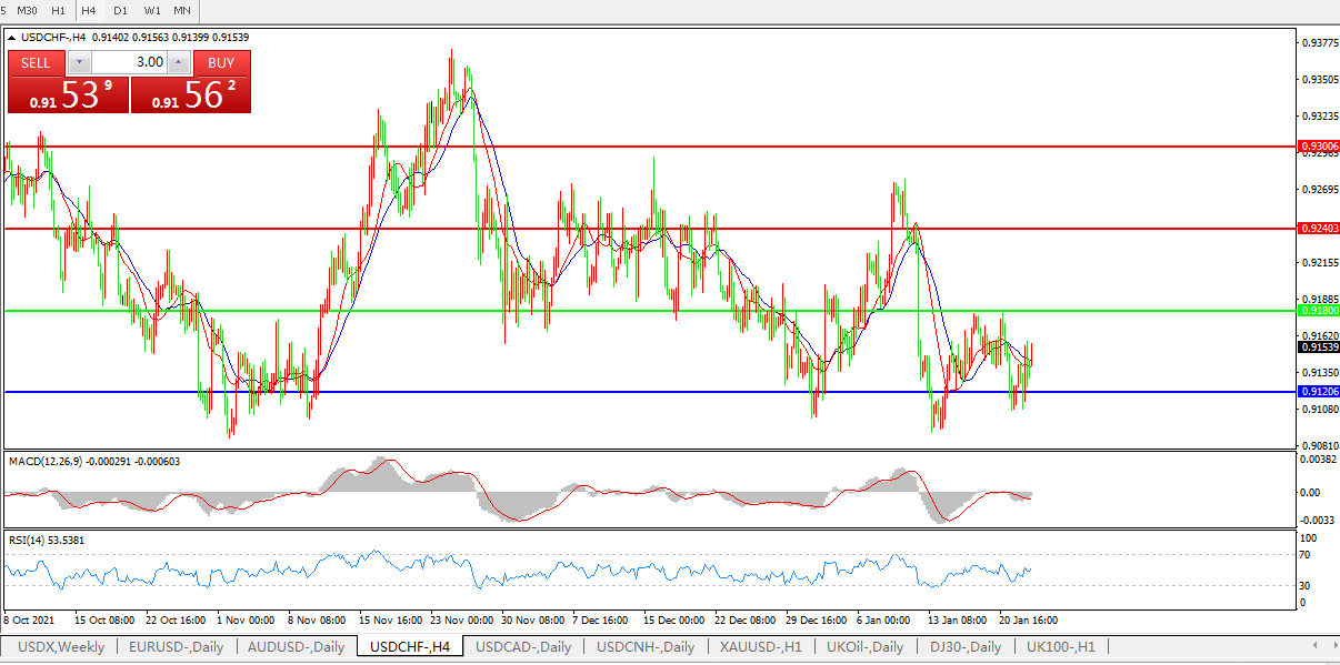 交易策略:0.9180下方看跌,目标0.9120、0.9040