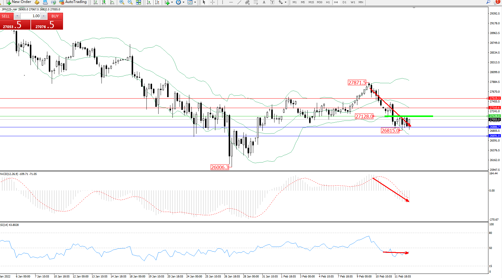 日经指数JPN225——4小时K线图显示: