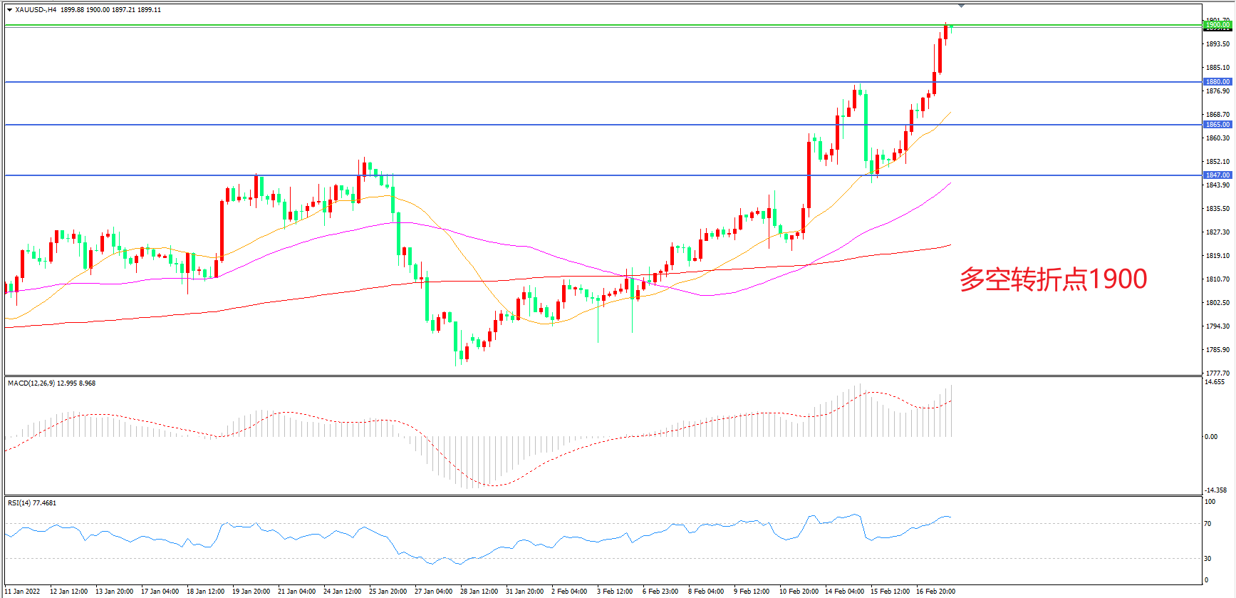 交易策略:在1900.00之上看涨,目标1915.00 1930.00