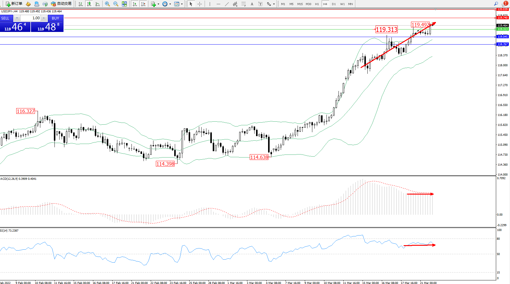 交易策略:119.313上方看涨,目标119.740、120.039